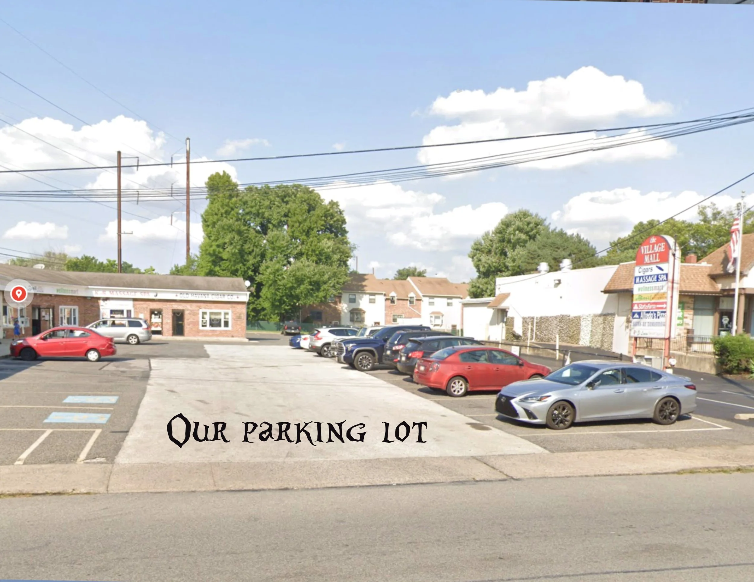 ✦ By car: Free parking at the Village Mall plaza across the street.